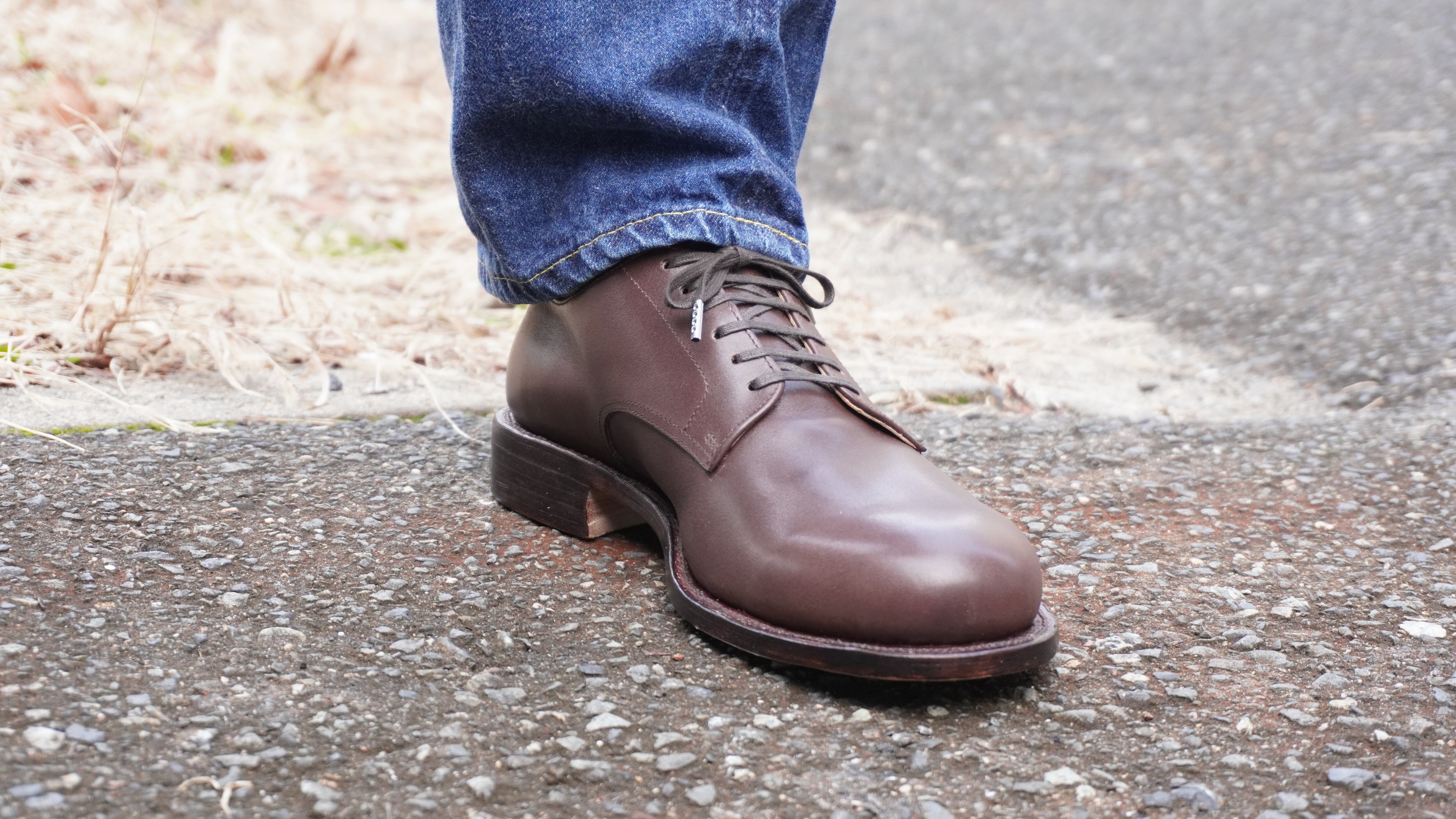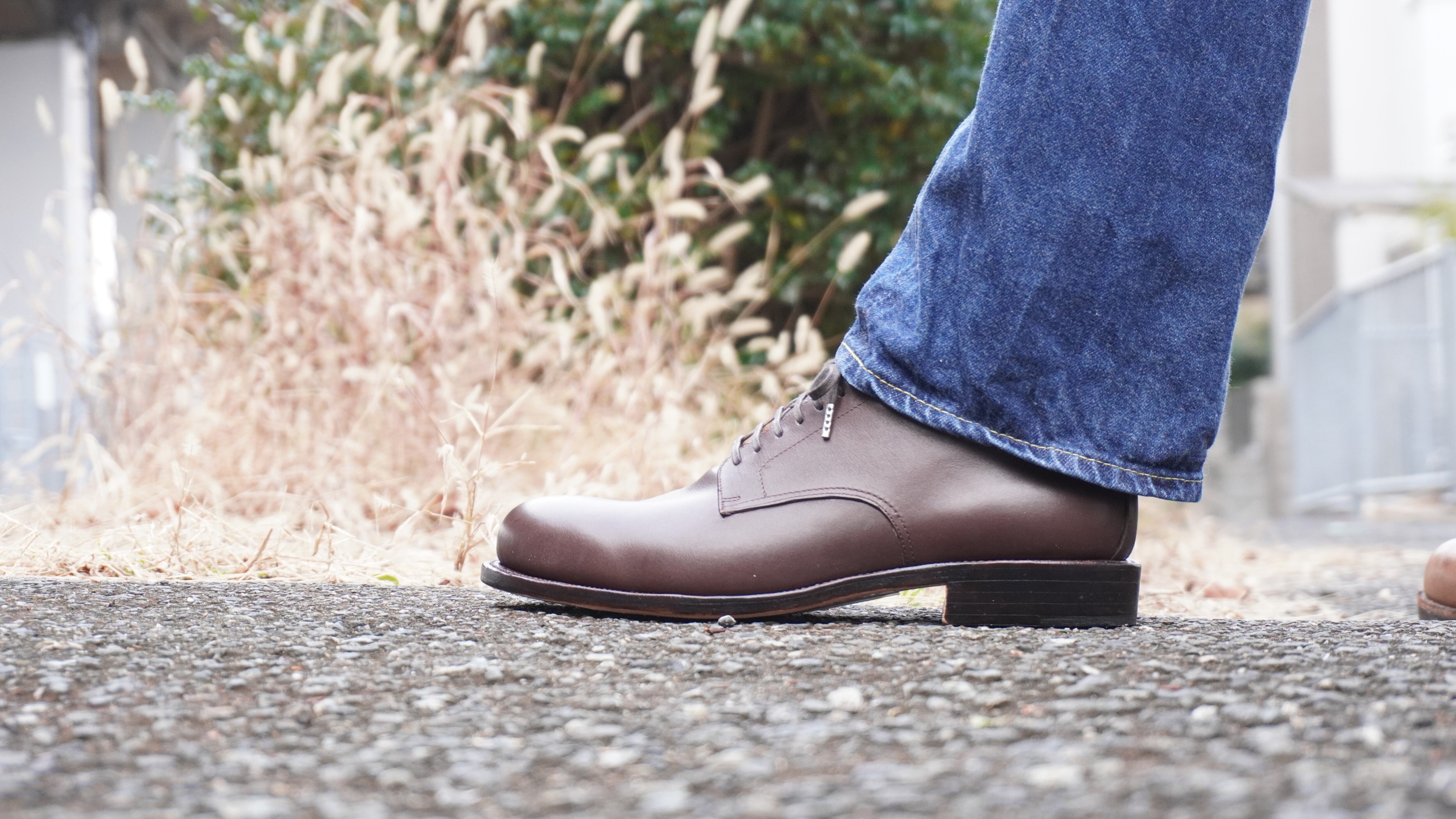 この外羽根プレーントゥは、どんなスタイルにも合わせやすく、